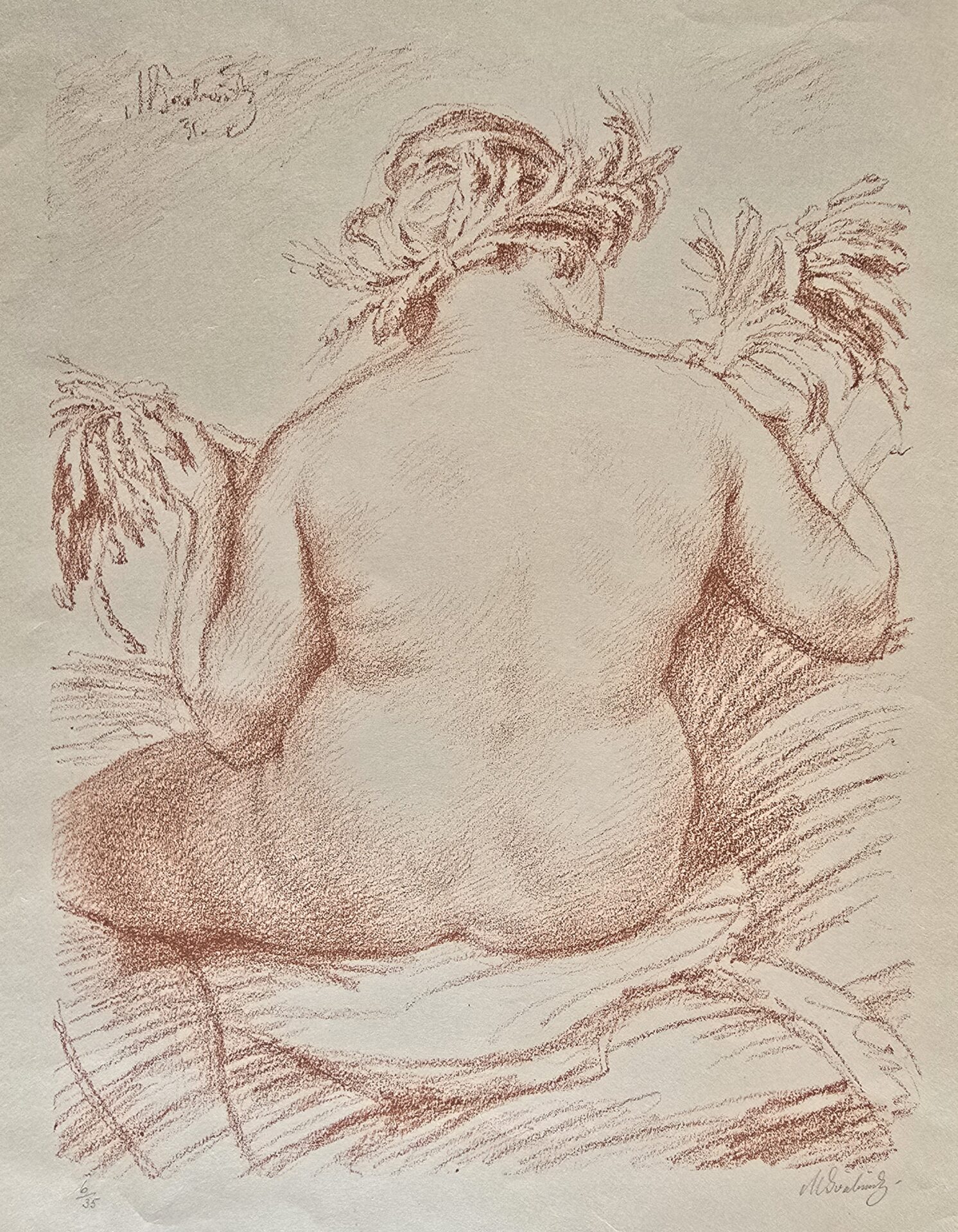 Akt sedící ženy zezadu, 1931, litografie, papír, 407×309 mm, Soukromá sbírka Michala Kürthy