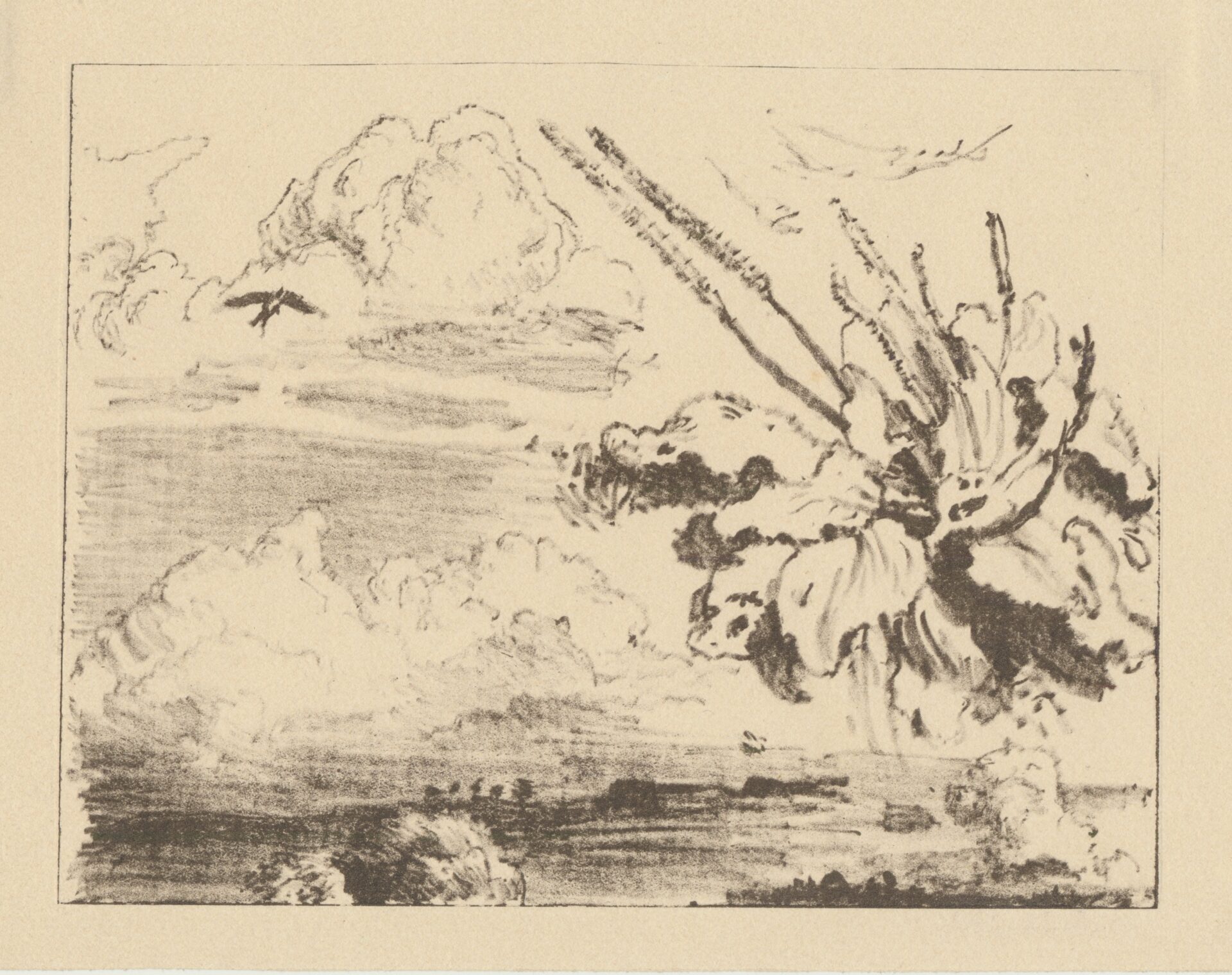 Krajina a trs jitrocele, 1928, litografie, papír holand, 142×227 mm, Soukromá sbírka Michala Kürthy (List byl později oříznut. NEjedná se o původní velikost. – pozn. ed.)
