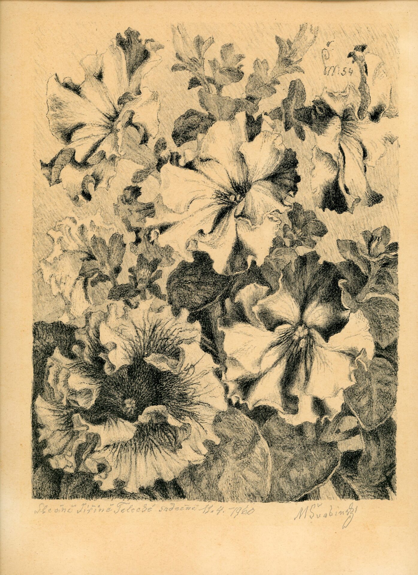Petúnie, 1954, litografie, papír strojní hlazený, 345×278 mm, Městské muzeum Česká Třebová