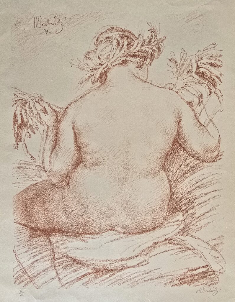 Akt sedící ženy zezadu